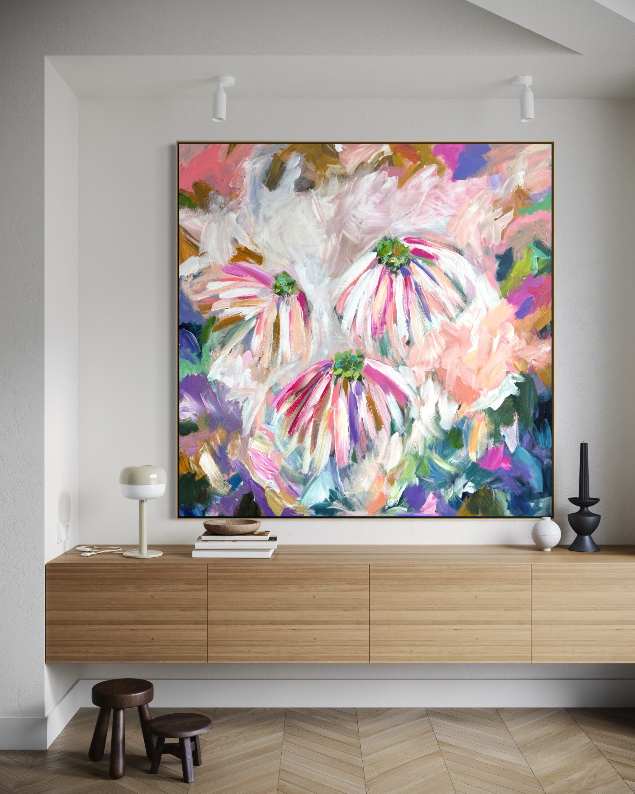 The painting is hand-painted with high-quality acrylic paints. I stretch a solid, thick Italian canvas on a wooden frame. ( floating frame from vizualization is not included). Protected with varnish, thanks to which the paint will not crack and fade. Sides painted over as a continuation. So you can hang it right after you pick it up.
