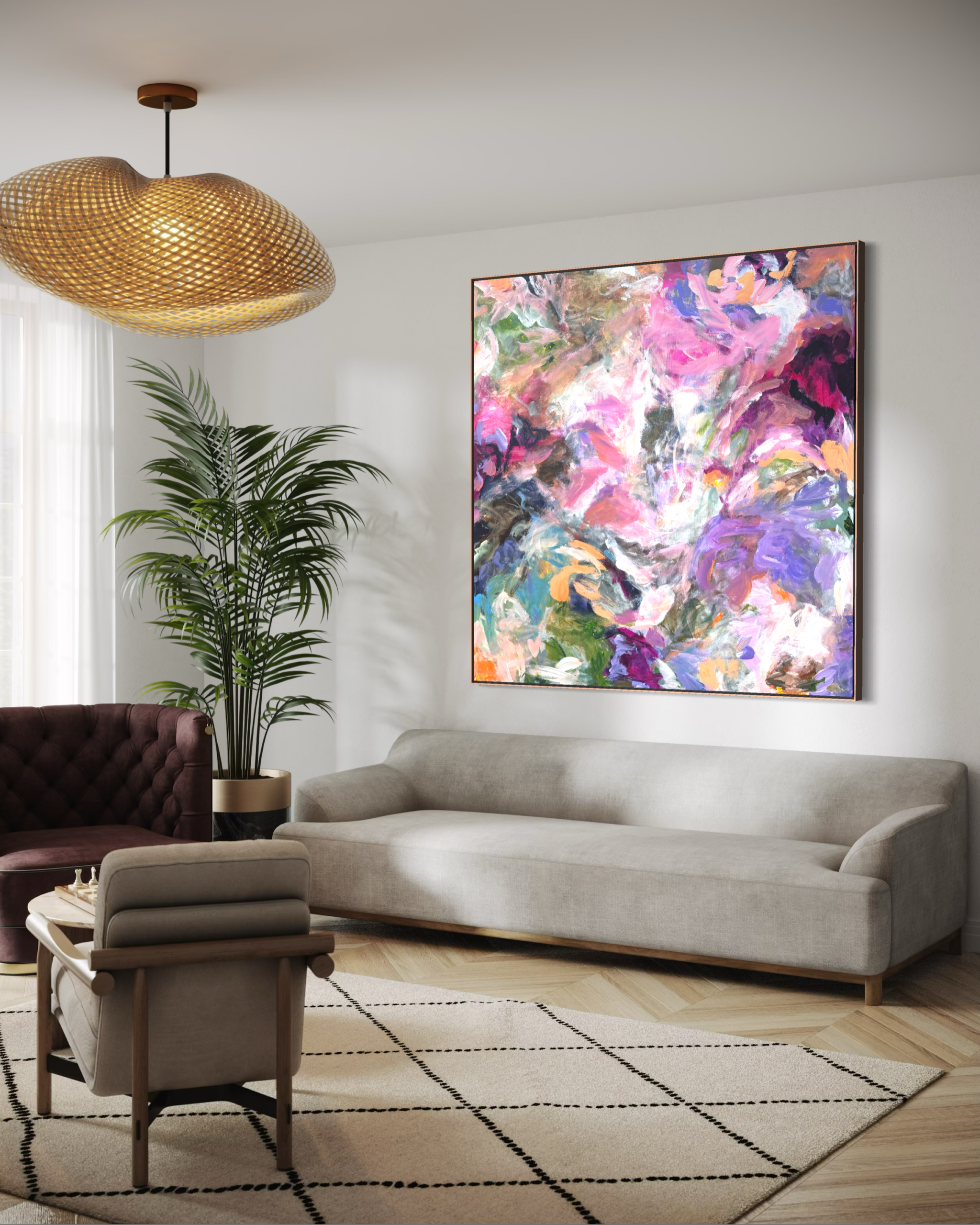The painting is hand-painted with high-quality acrylic paints. I stretch a solid, thick Italian canvas on a wooden frame. ( floating frame from vizualization is not included). Protected with varnish, thanks to which the paint will not crack and fade. Sides painted over as a continuation. So you can hang it right after you pick it up.