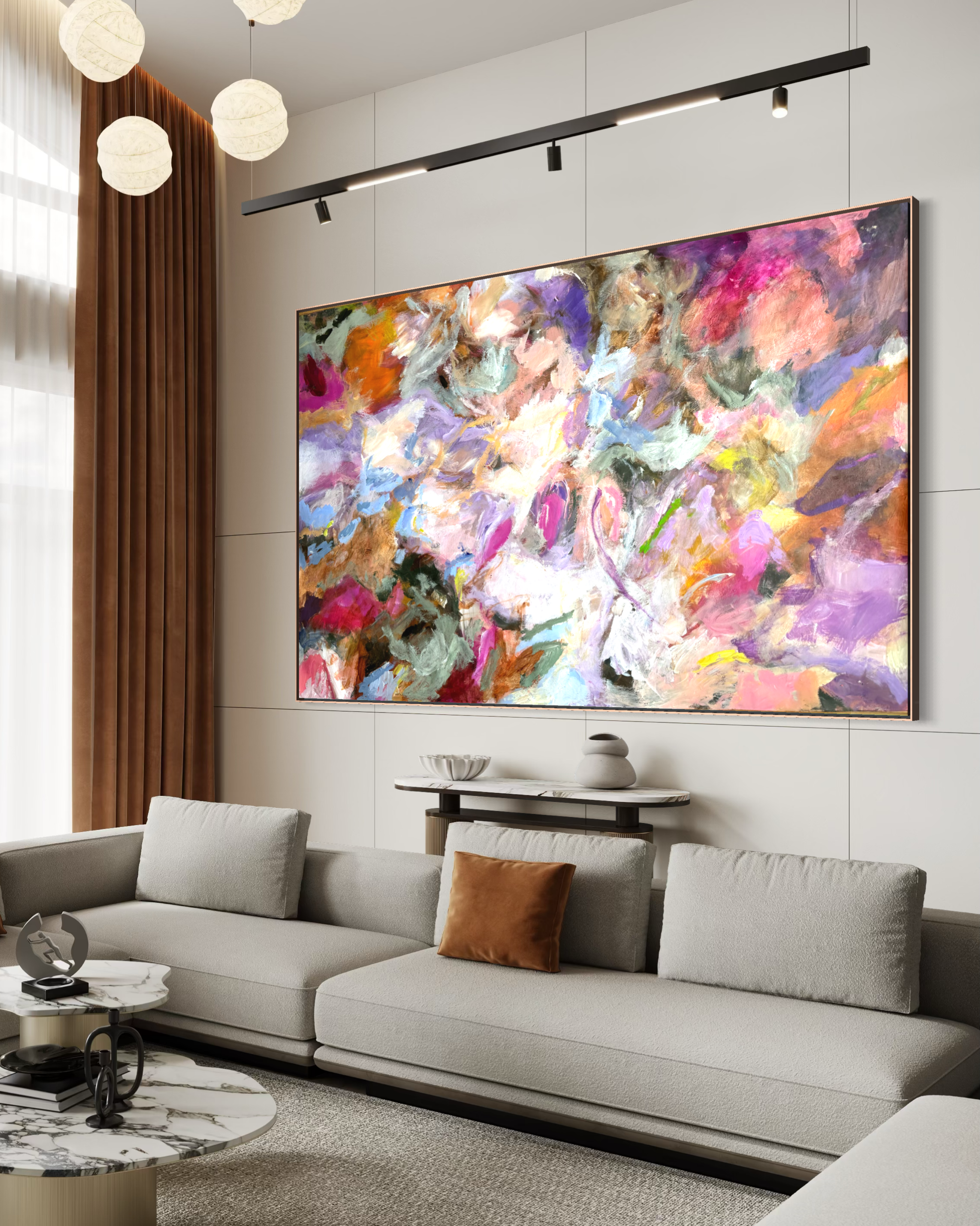 The painting is hand-painted with high-quality acrylic paints. Rolled canvas. ( floating frame from vizualization is not included). Protected with varnish, thanks to which the paint will not crack.