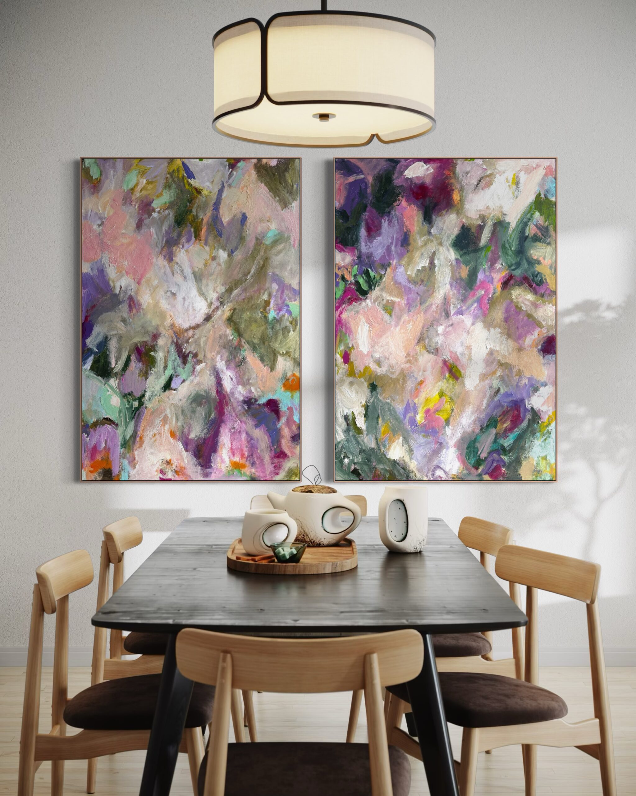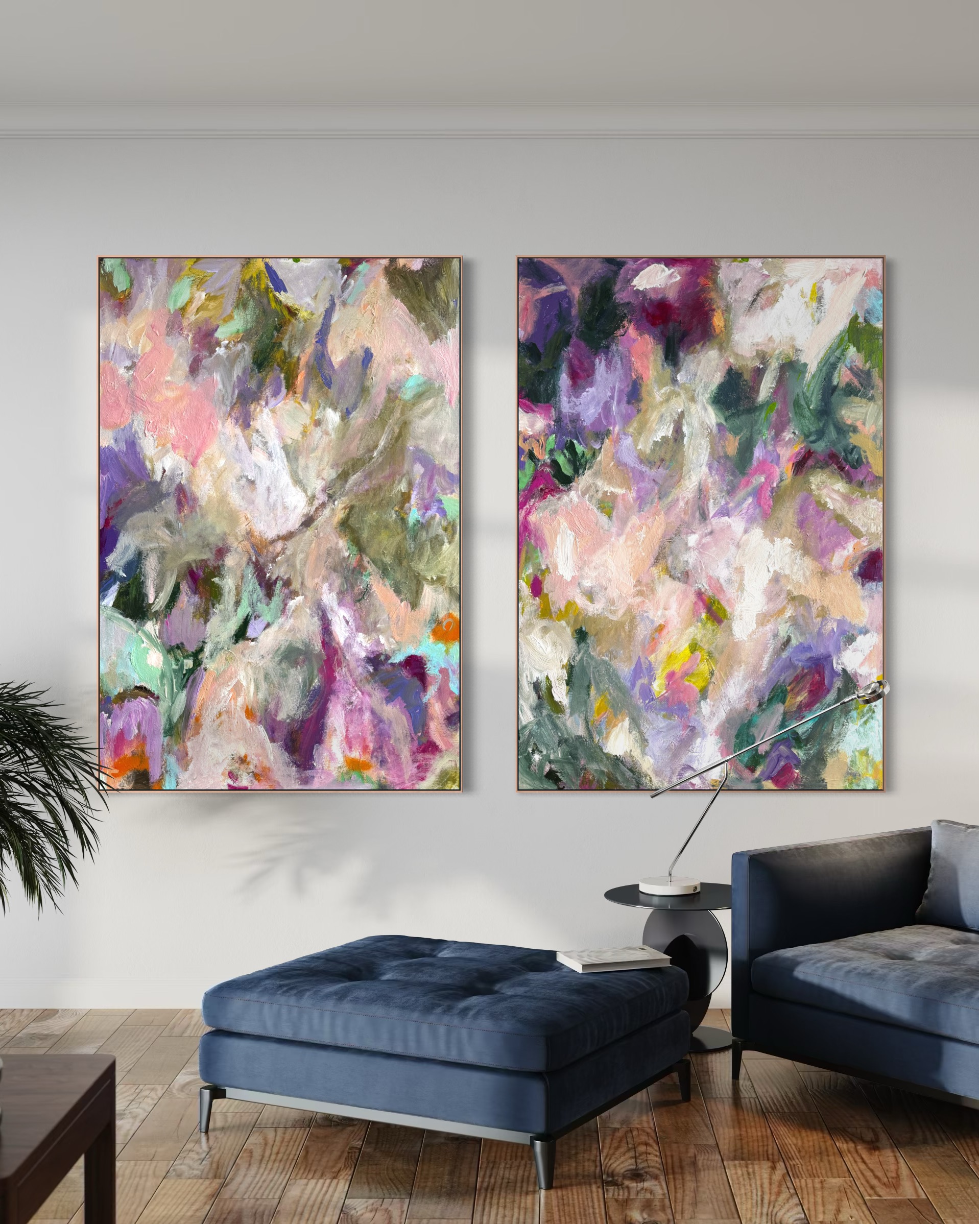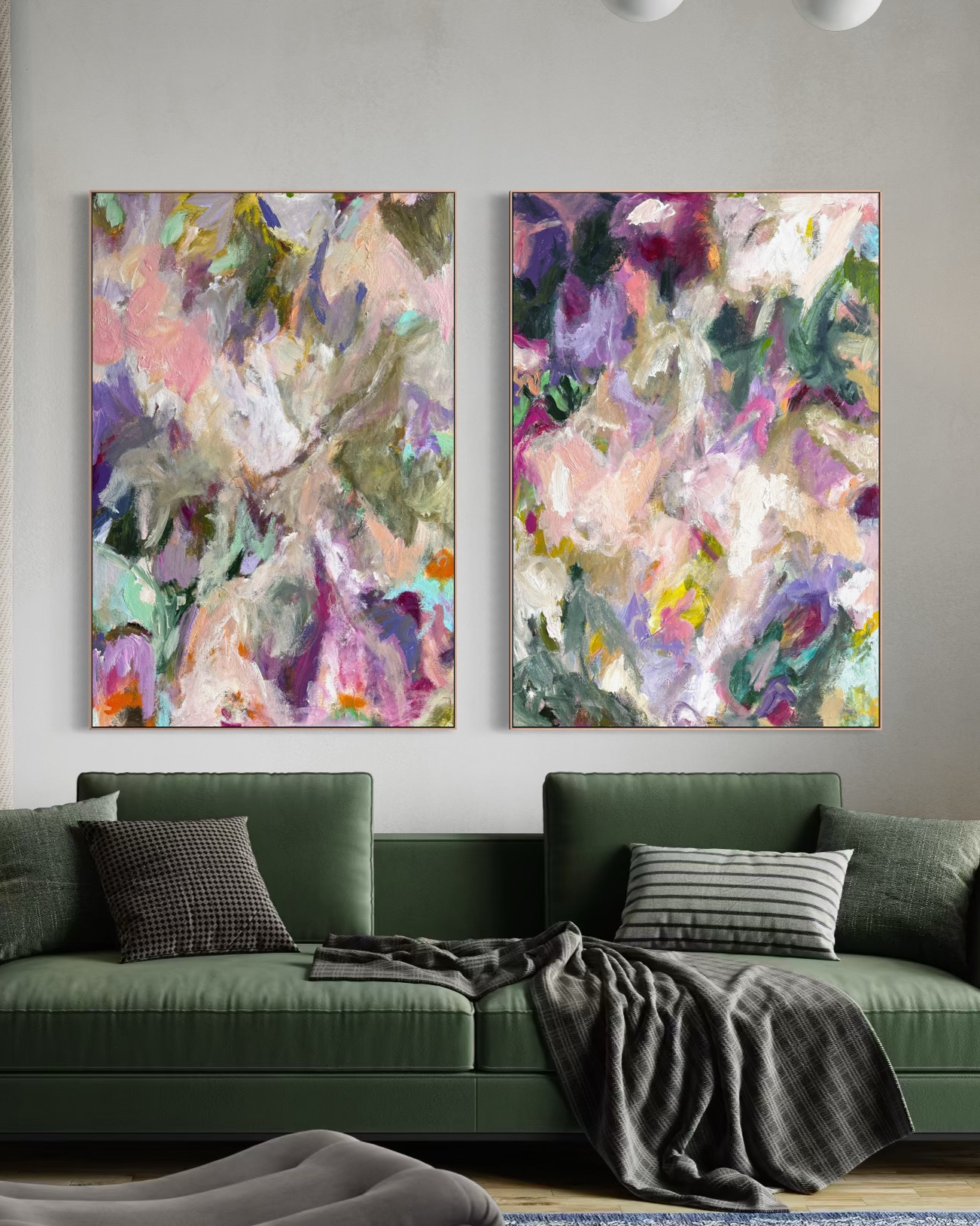 The painting is hand-painted with high-quality acrylic paints. I stretch a solid, thick Italian canvas on a wooden frame. (Floating frame  from vizualization is not included). So you can hang it right after you pick it up. Protected with varnish, thanks to which the paint will not crack and fade. Sides painted over as a continuation.