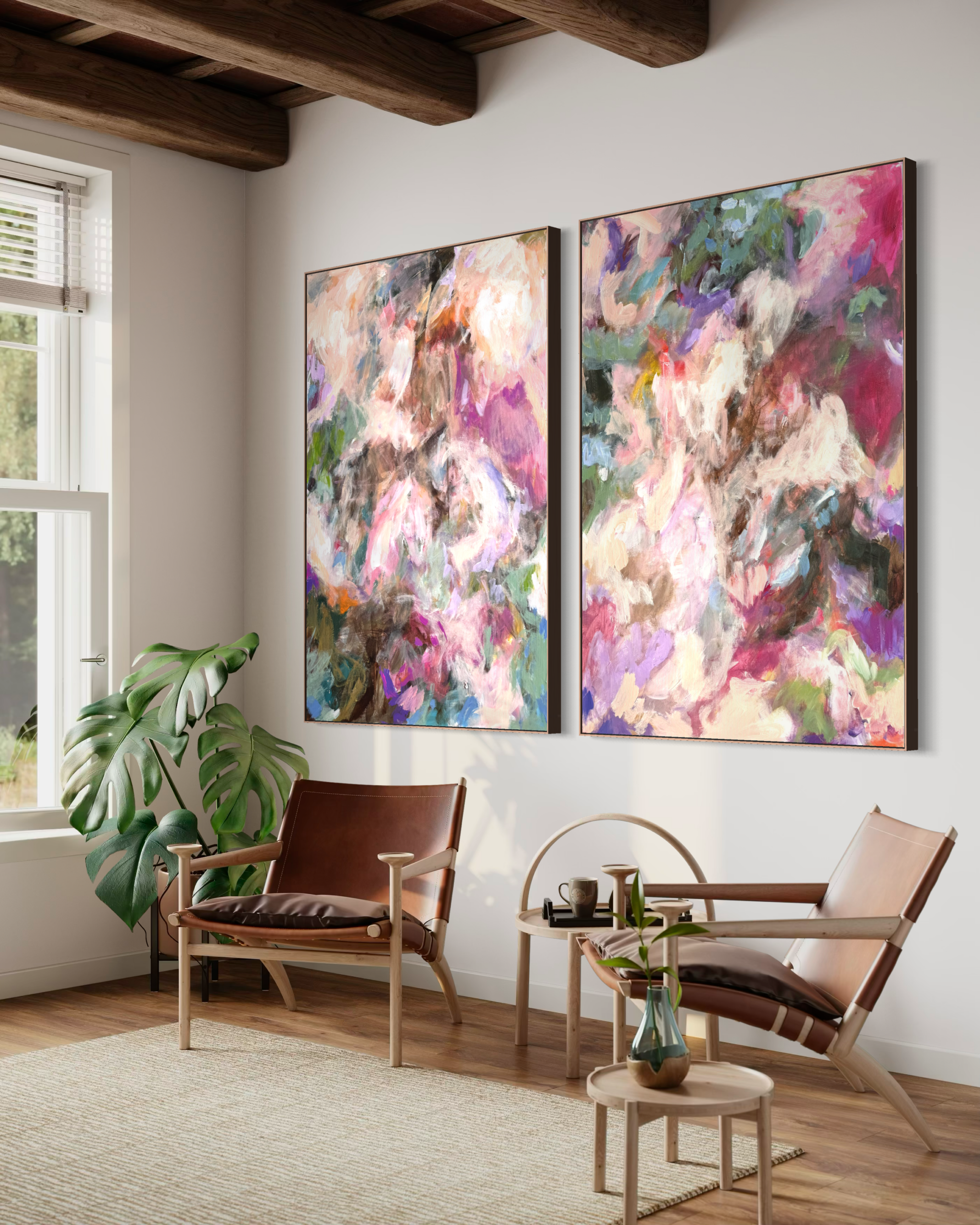 The painting is hand-painted with high-quality acrylic paints. I stretch a solid, thick Italian canvas on a wooden frame. (Floating frame from vizualization is not included). So you can hang it right after you pick it up. Protected with varnish, thanks to which the paint will not crack and fade. Sides painted over as a continuation.