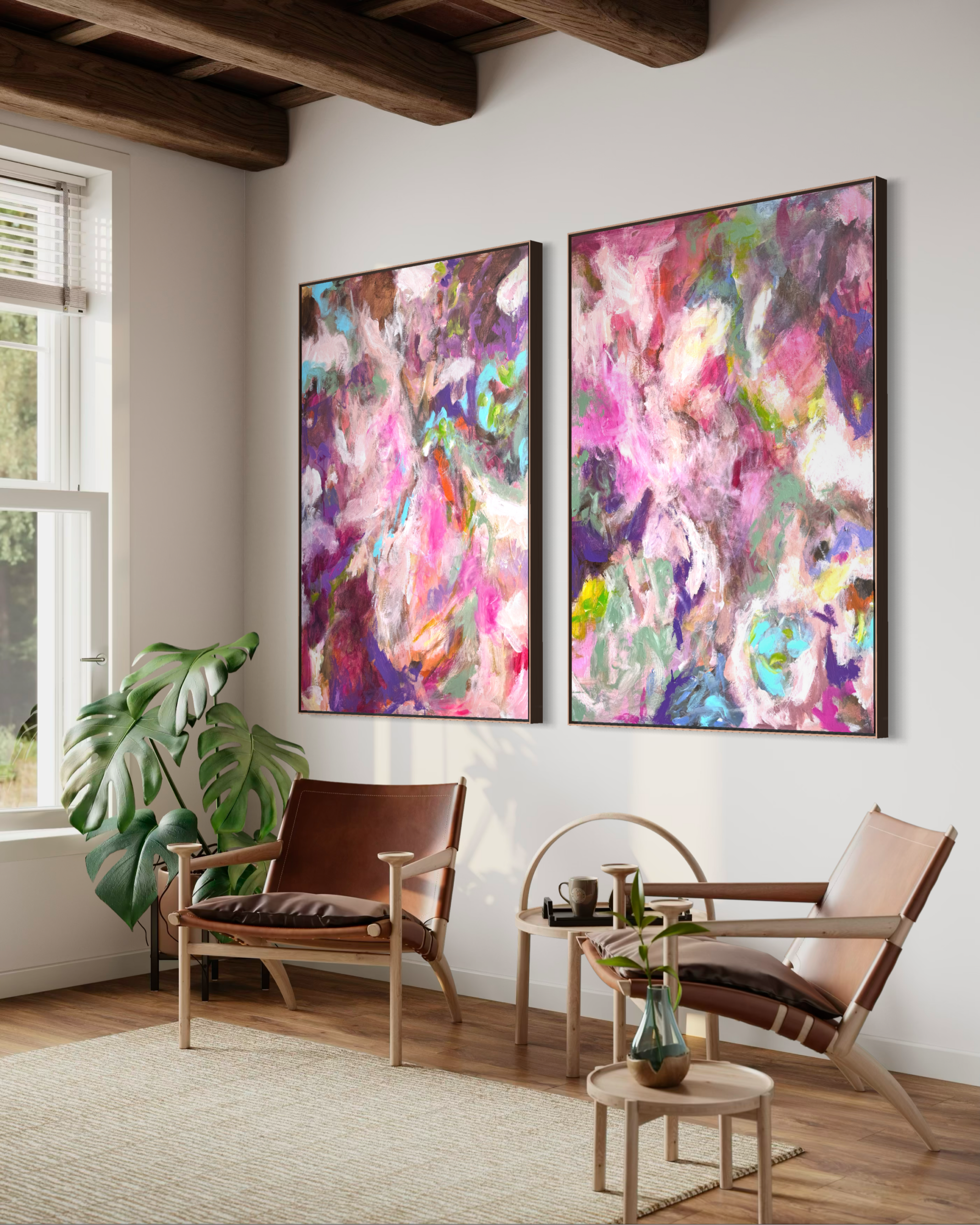 The painting is hand-painted with high-quality acrylic paints. I stretch a solid, thick Italian canvas on a wooden frame. (Floating frame from vizualization is not included). So you can hang it right after you pick it up. Protected with varnish, thanks to which the paint will not crack and fade. Sides painted over as a continuation.